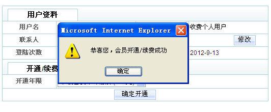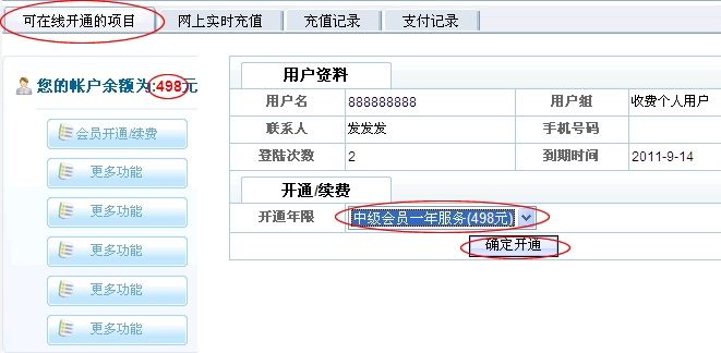 六、短信提示充值成功后、点击平台在线支付页面中的标签“可在线支付项目”,选择要开通的期限,点击“确认开通”
