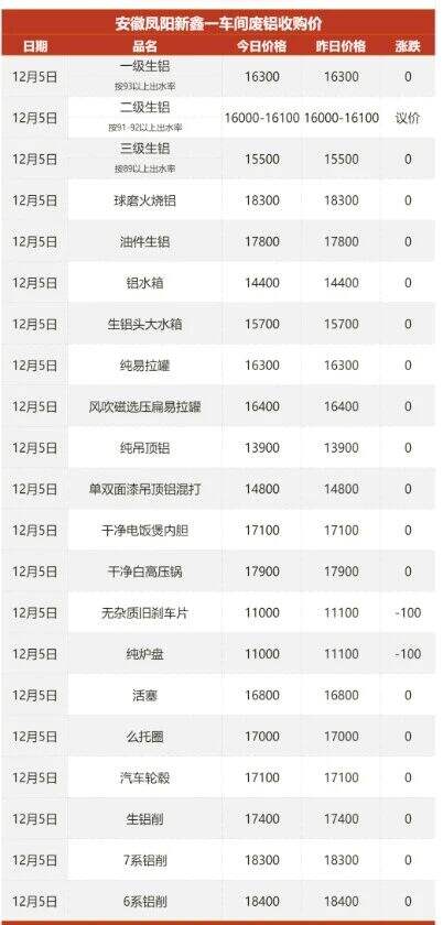 2025年12月5日安徽新鑫一车间废铝采购报价