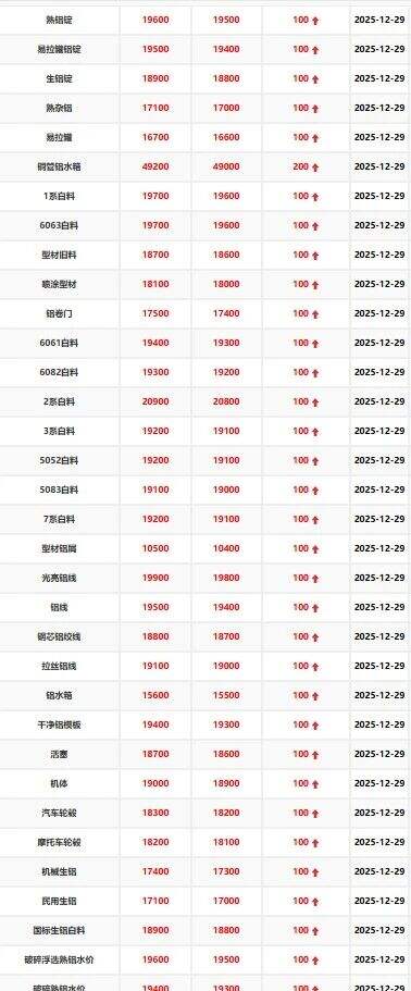 2025年12月29日江西保太有色金属集团有限公司废铝收购价格