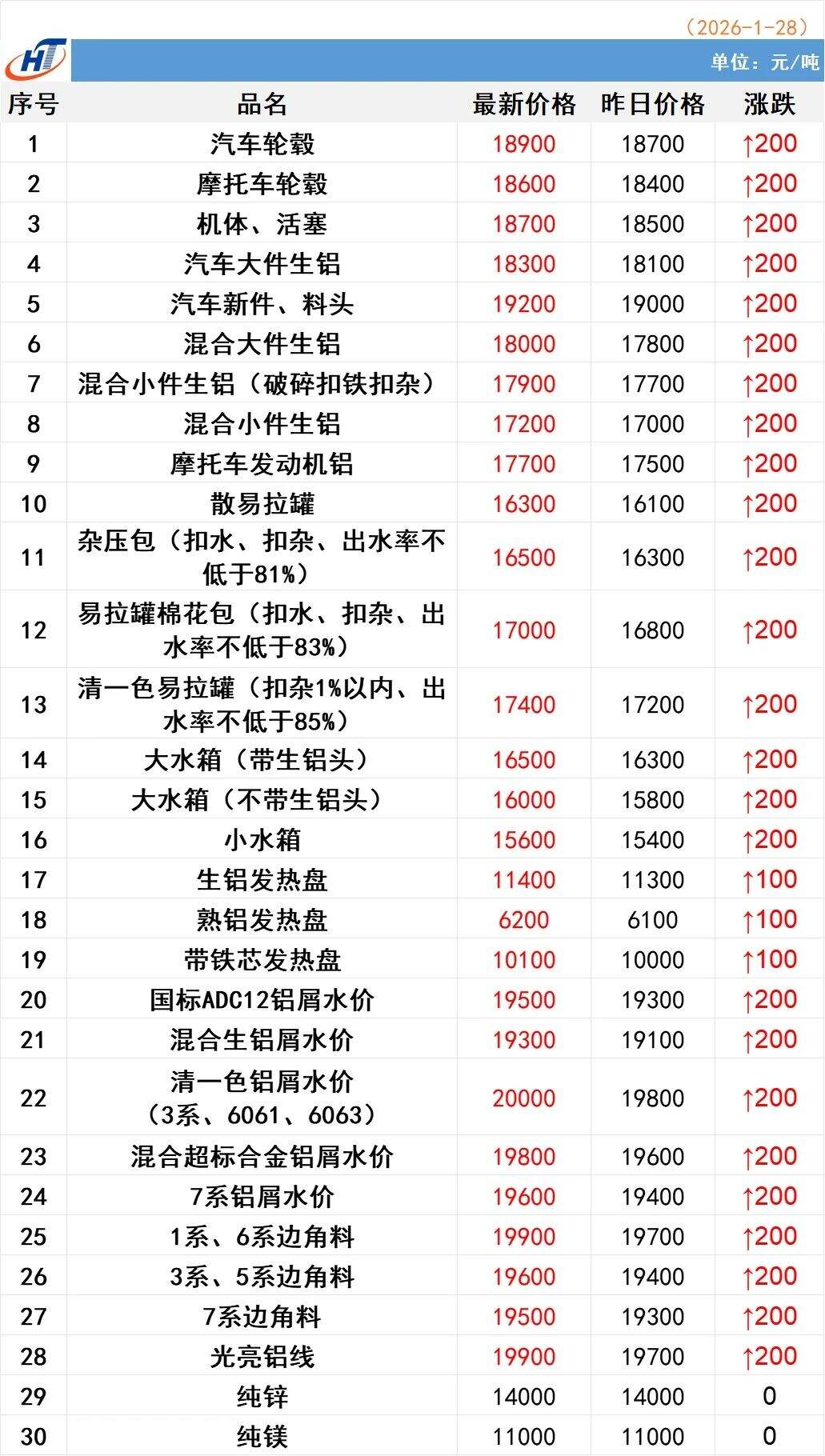 2026年1月28日湖南宏拓铝业有限公司最新报价