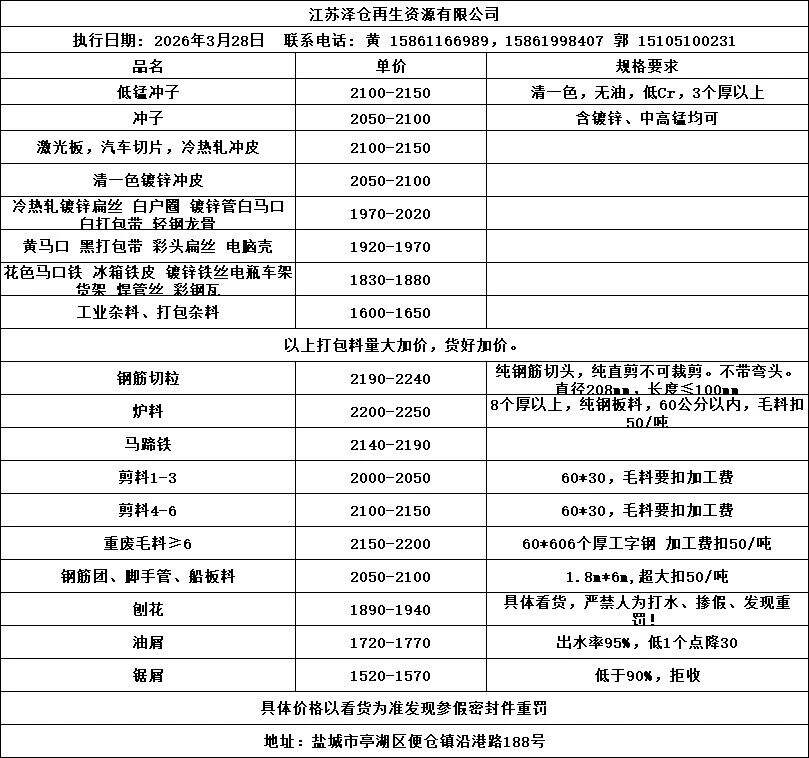 铁屑刨花 废铜价格 废铝价格 废不锈钢
