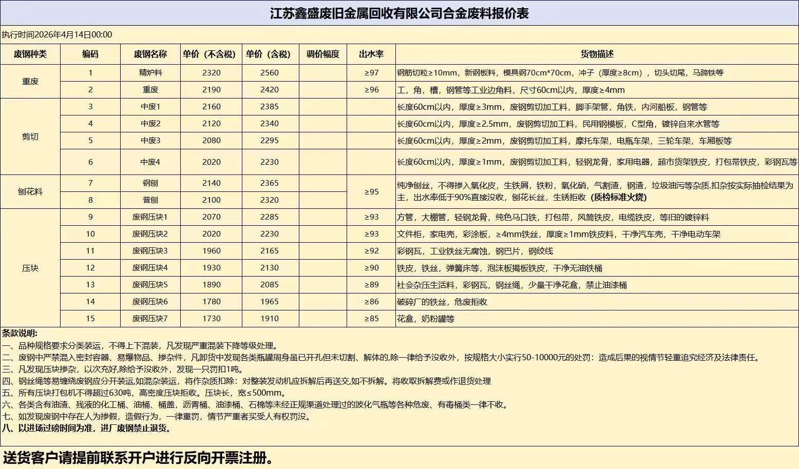 铁屑刨花 废铜价格 废铝价格 废不锈钢