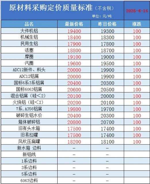 2026年4月16日顺博铝合金湖北有限公司最新价格