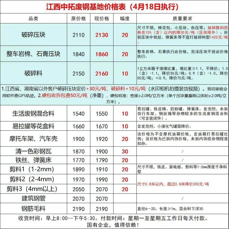 铁屑刨花 废铜价格 废铝价格 废不锈钢