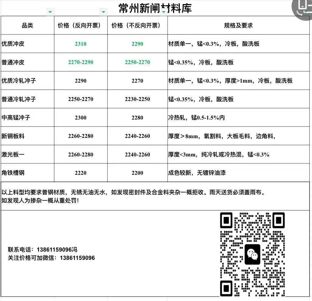 今年起江苏常州新闸材料库执行“反向开票”相关政策,高价收购、自提冷板冲皮,钢板料(支持带票)。