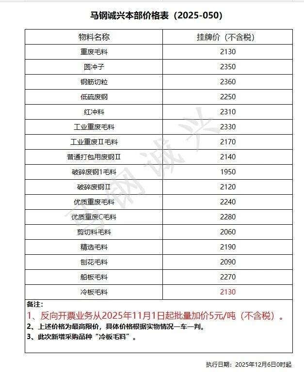 **月*日起,马钢诚兴本部新增采购品种“冷板毛料”: