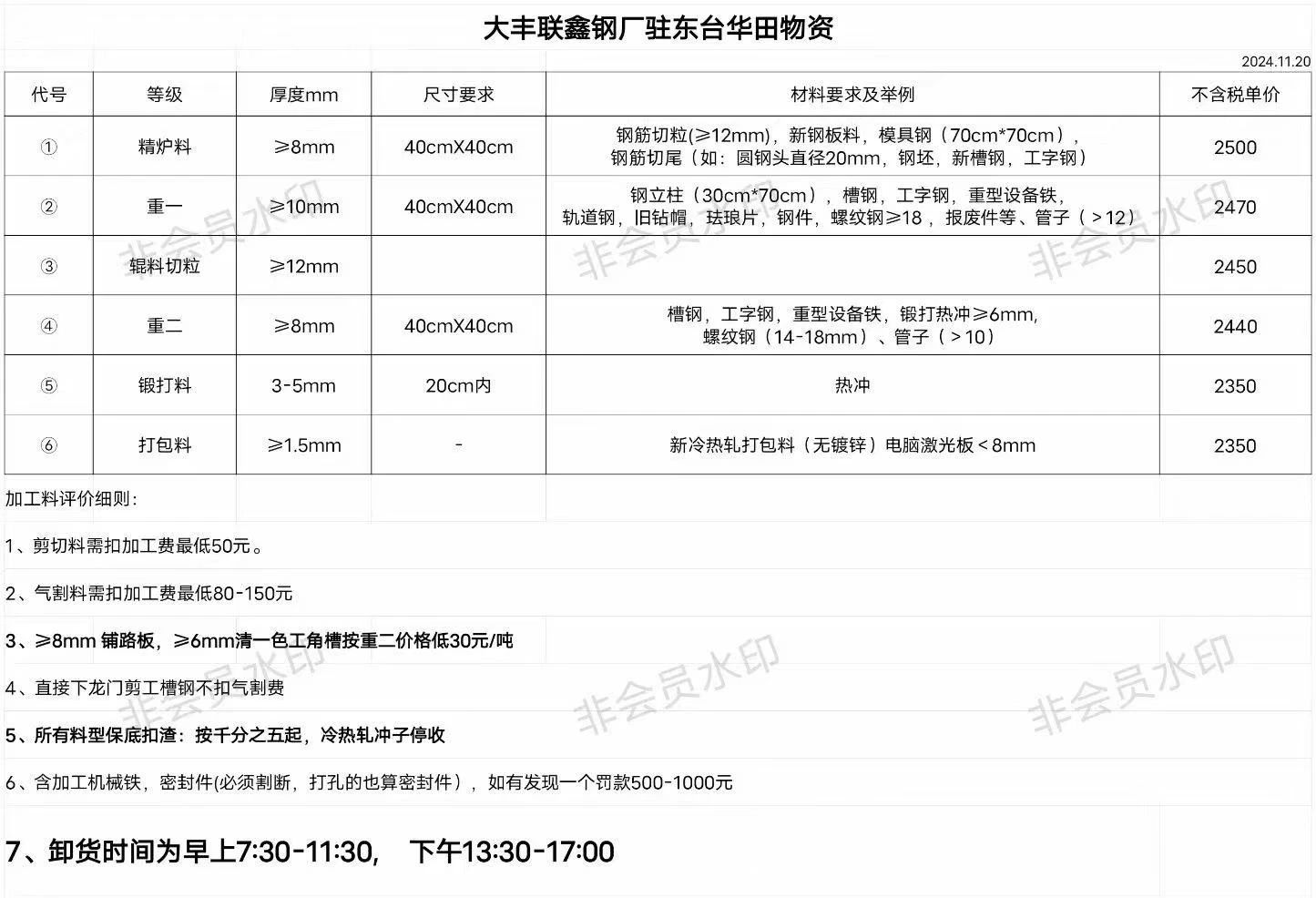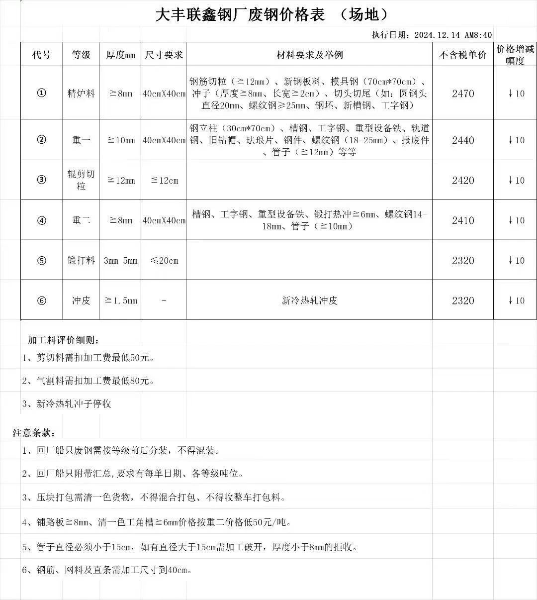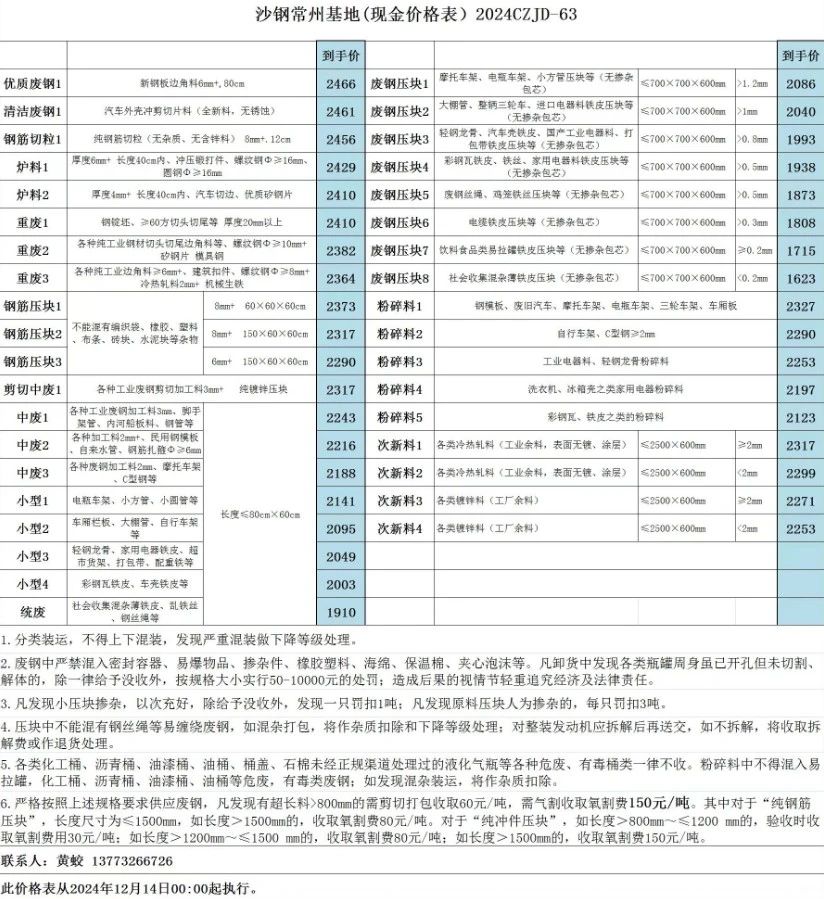 价格表更新!各废钢供货单位:常州沙钢基地自****年**月**日起废钢含税价下调**元/吨,具体废钢价格以基地价格表为准。