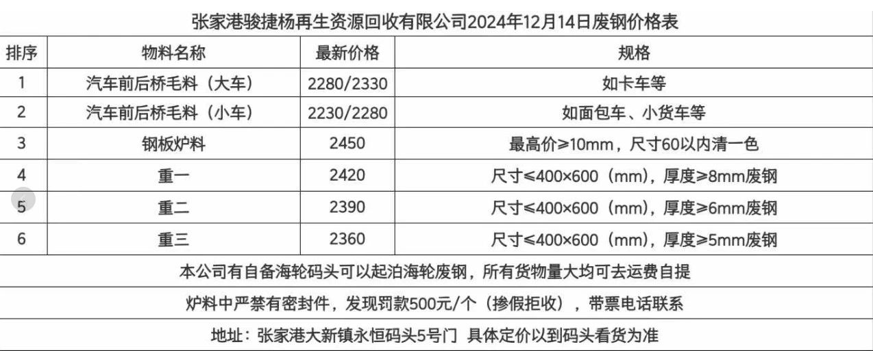 ****年**月**日江苏张家港骏捷杨再生资源回收有限公司废钢报价