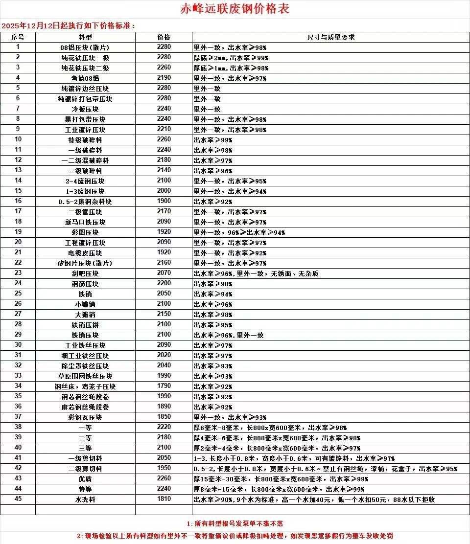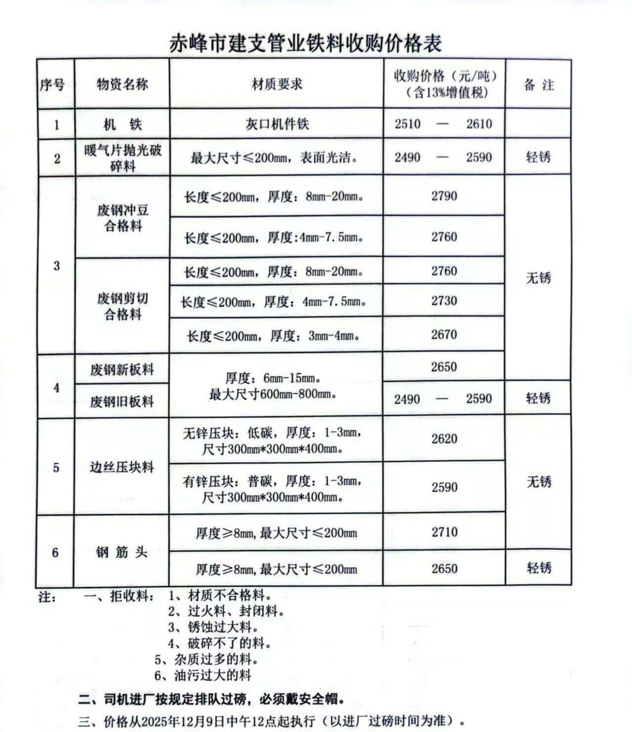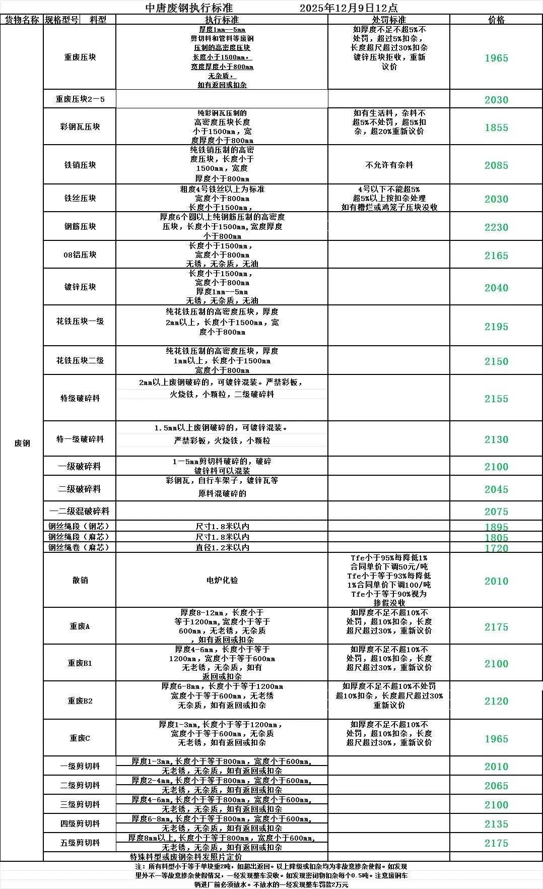乌钢:重型*类:≥**mm,****中型*类:≥**mm,****中型*类:≥*mm,****中型*类:≥*mm,****一级剪切料:≥*mm,****钢筋压块:****花铁压块:****。