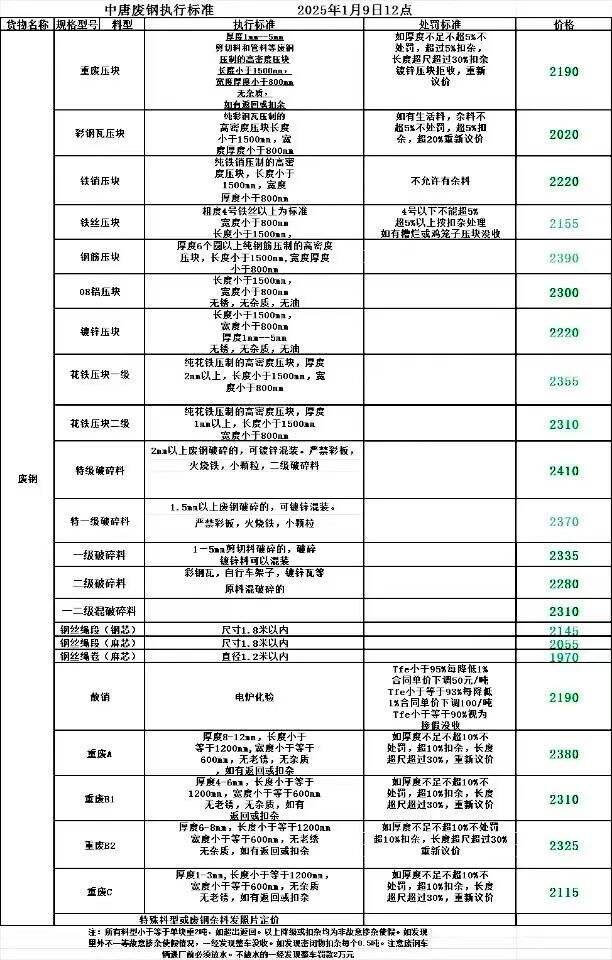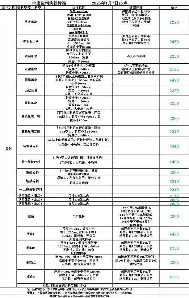 中唐特钢*月*日下午**点所有料型含税降**元,*日赤峰中唐最新,重废压块****,彩钢瓦压块****,破碎料****-****,铁屑压块****,镀锌压块****,不含税
