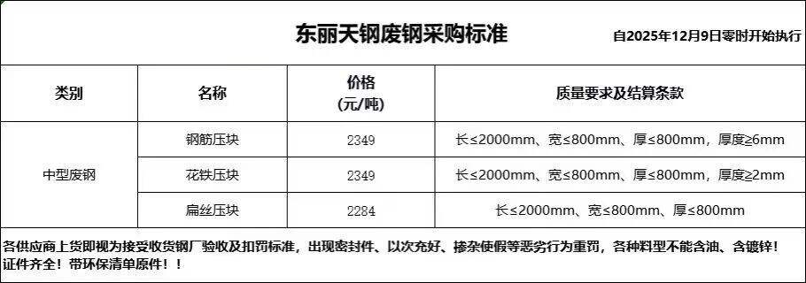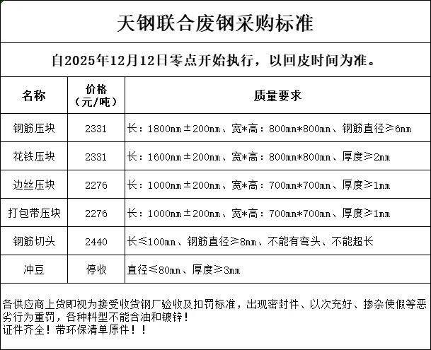 天津大无缝,本期废钢采购价格下调**元/吨。具体价格表为准。