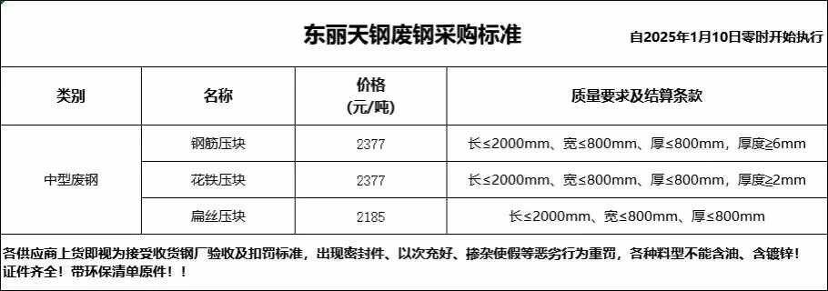 东丽天钢通知,废钢价格降**-**!具体价格以厂家价格表为准,*日东丽天钢零点价格,钢筋压块****,花铁压块****,扁丝压块****具体价格以厂家价格表为准