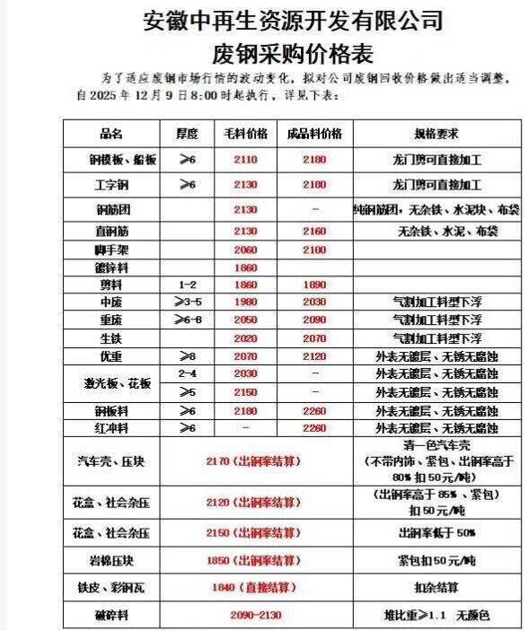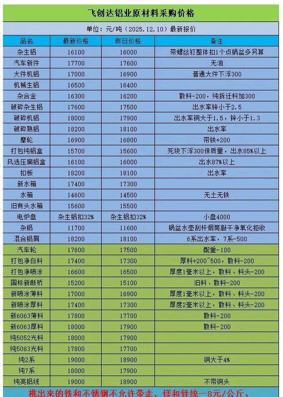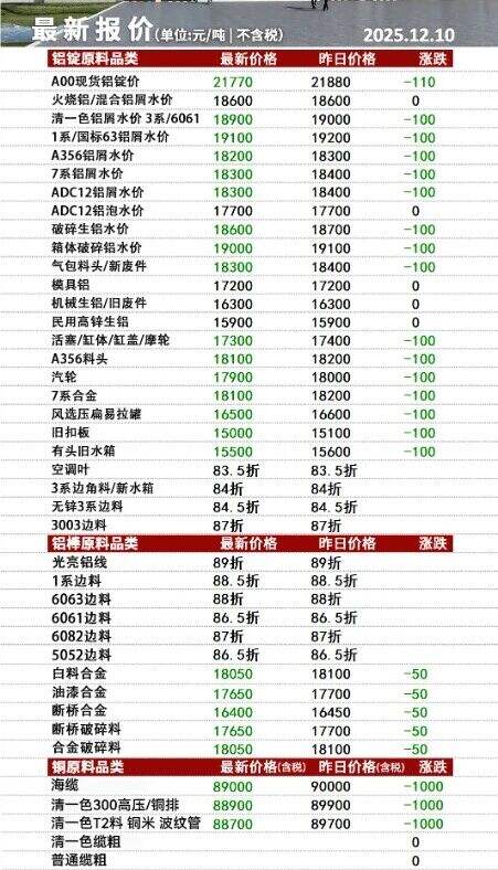 **月*日安徽彭澜再生资源价格:今天所有品种统一跌**.具体以价格表为准
