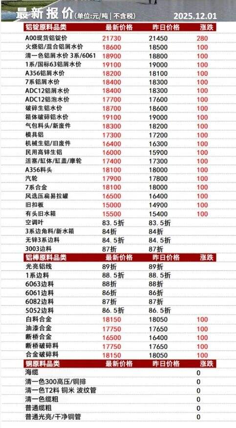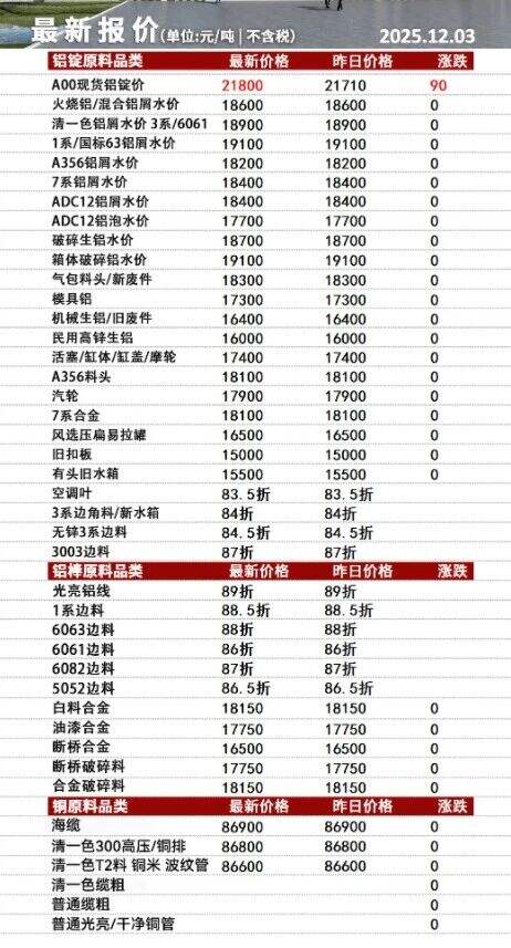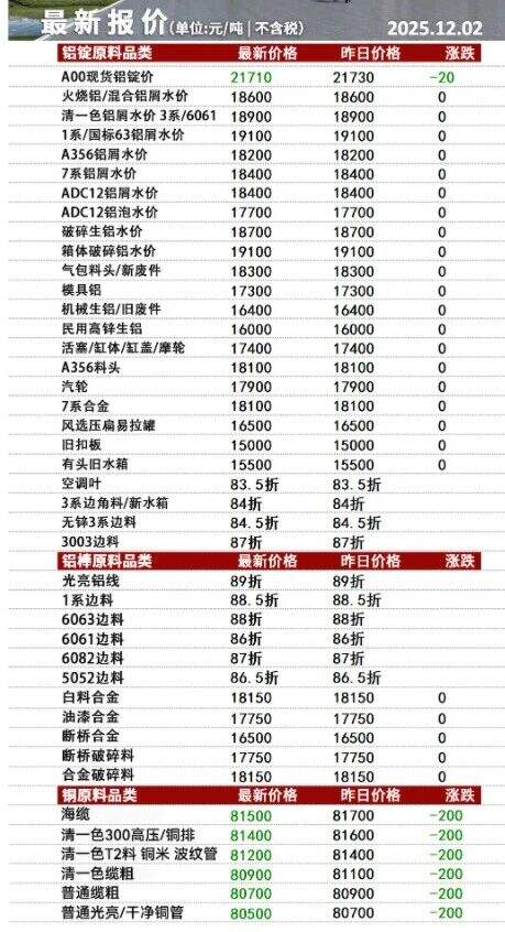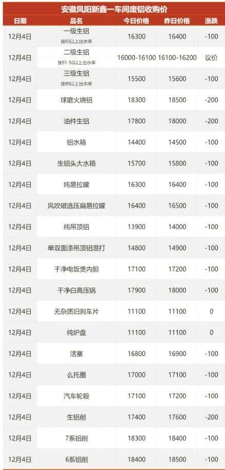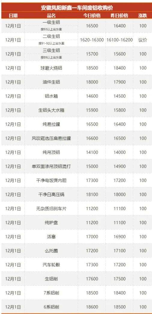 ****年**月*日安徽新鑫一车间废铝采购报价