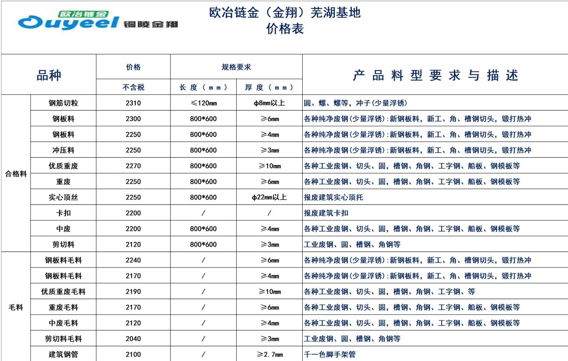 欧冶链金(金翔)芜湖基地**月*日价格上调**元/吨具体价格如下