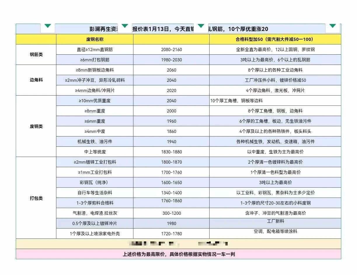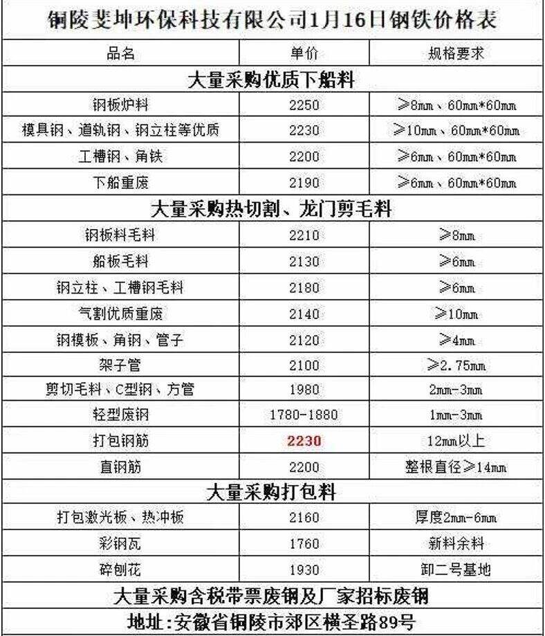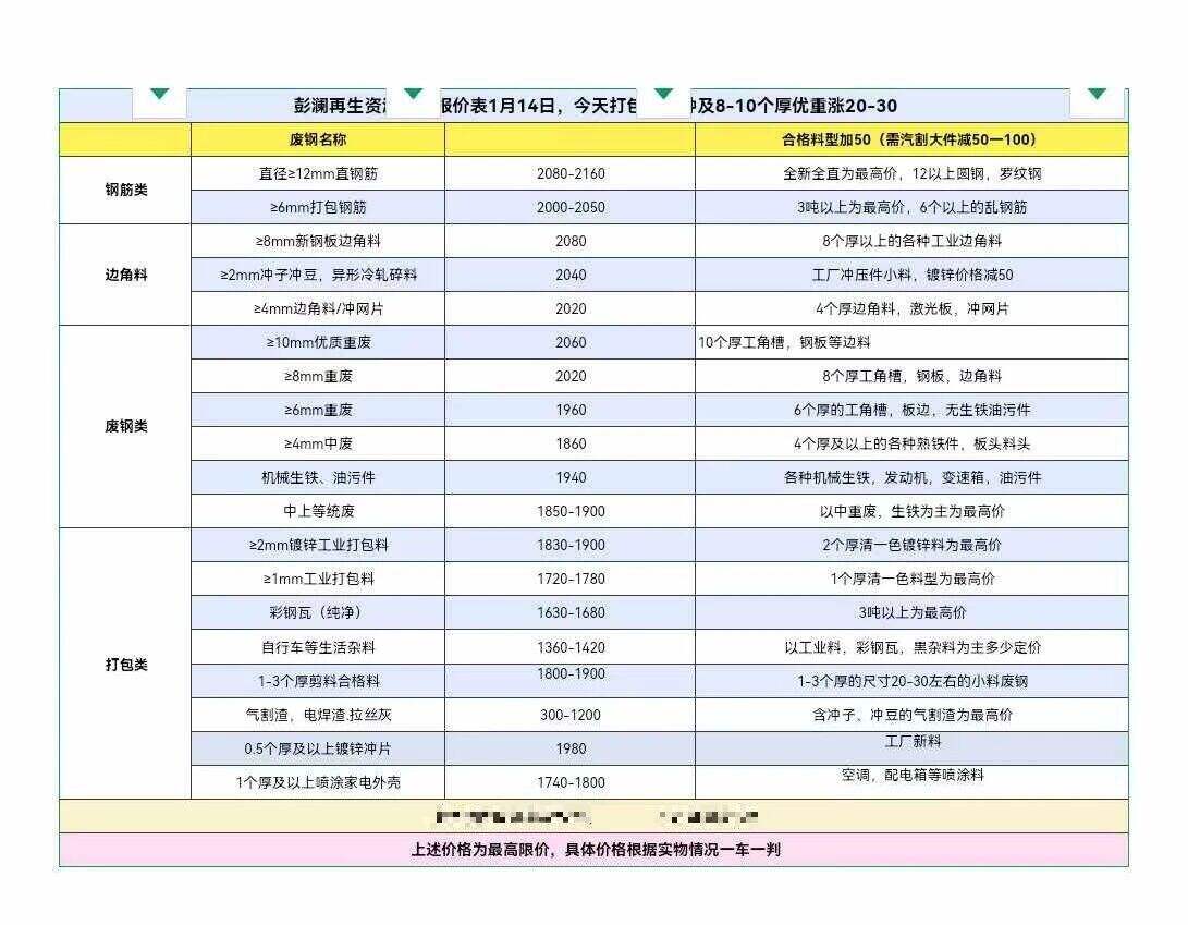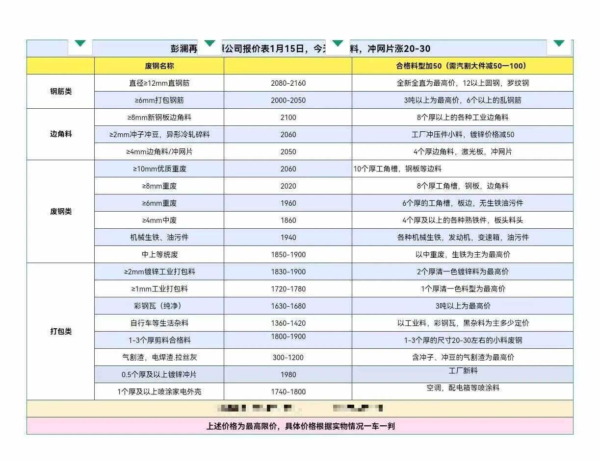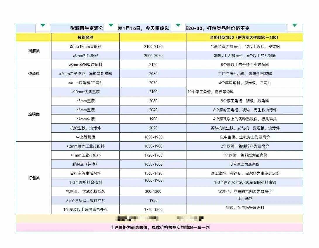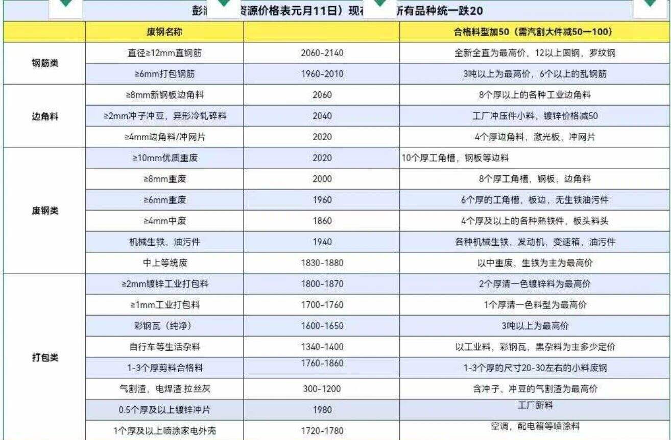 ****年*月**日安徽省桐城市彭澜再生资源所有品种废钢,打包料统一跌**,具体以价格表为准