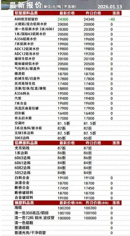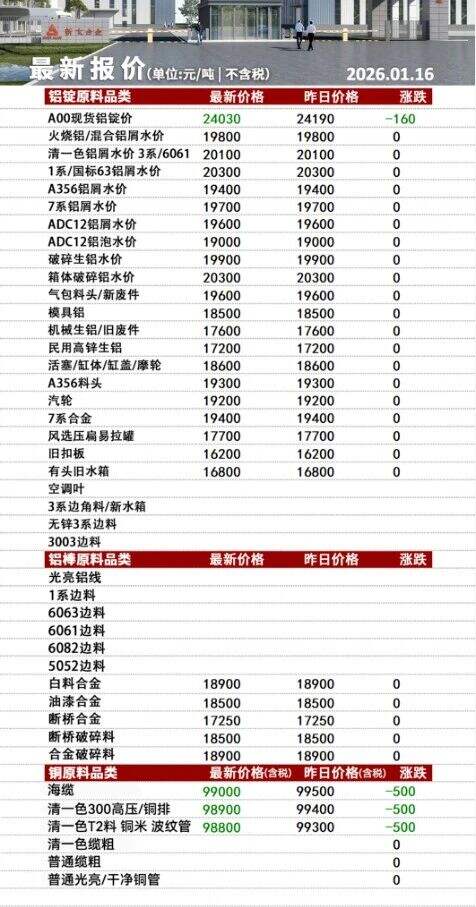 ****年*月**日安徽新太合金有限公司最新报价