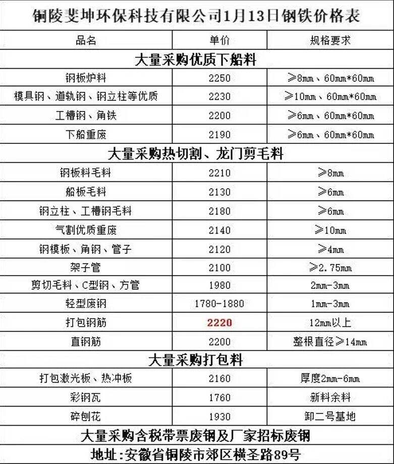 ****年*月**日铜陵斐坤环保科技有限公司钢铁价格表