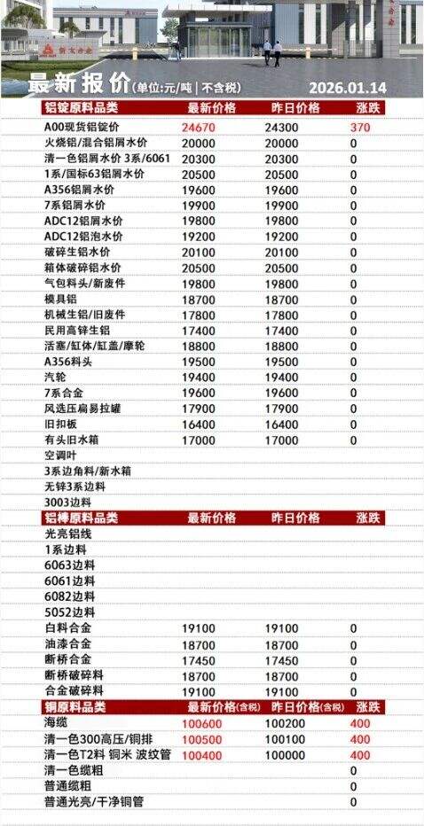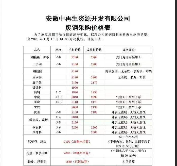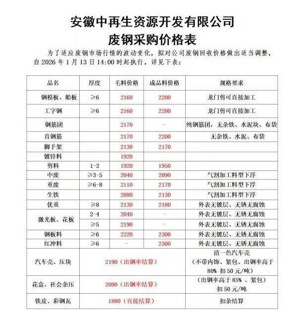 *月**日安徽中再生资源开发有限公司价格上调**-**元/吨