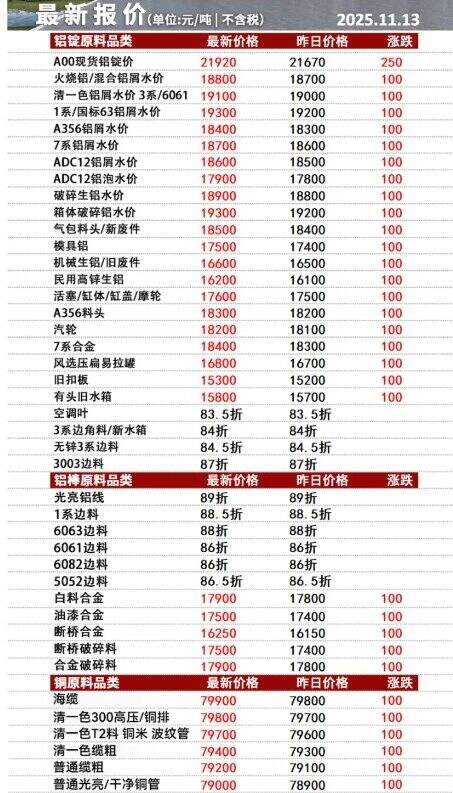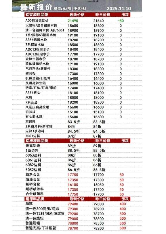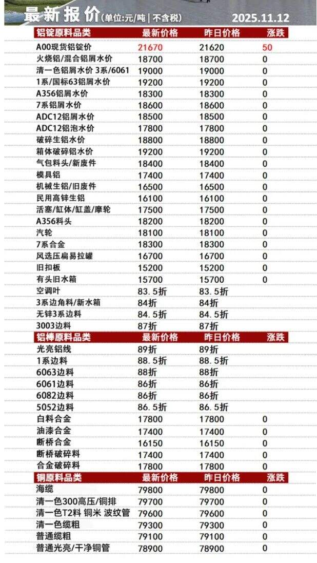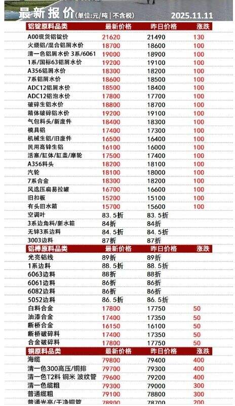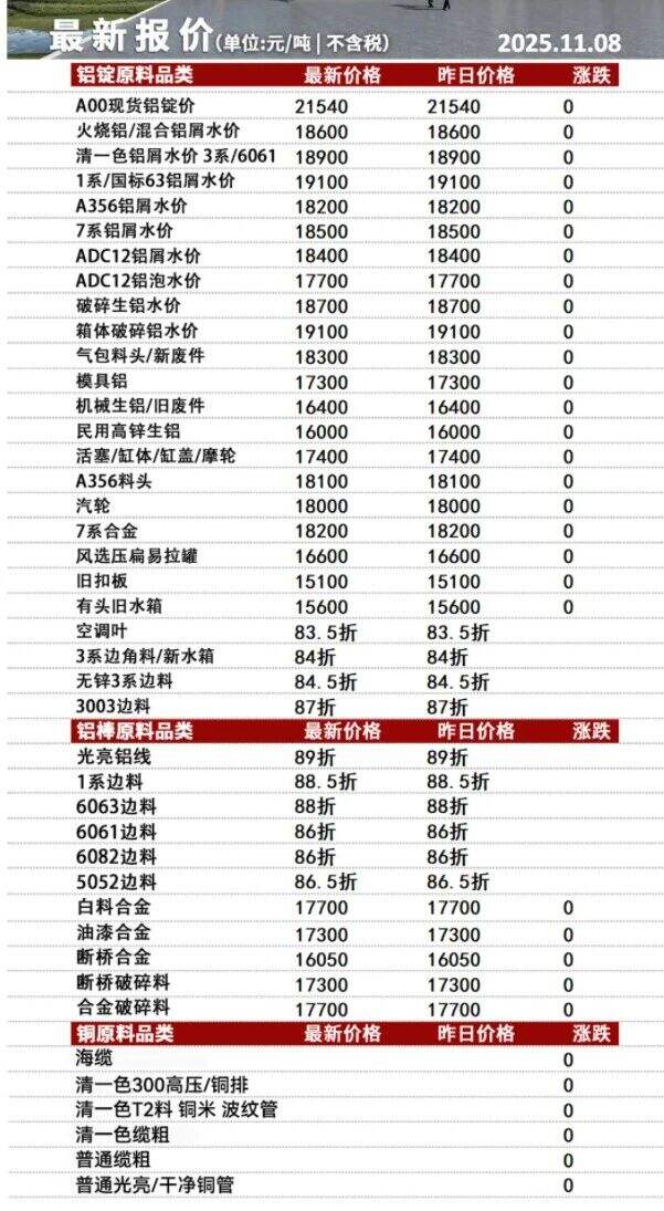 ****年**月**日安徽新太合金有限公司废铝,铜报价
