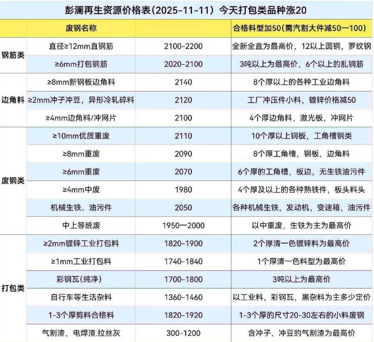 ****年**月**日安徽省桐城市彭澜再生资源报价部分上调:打包类品种上调**