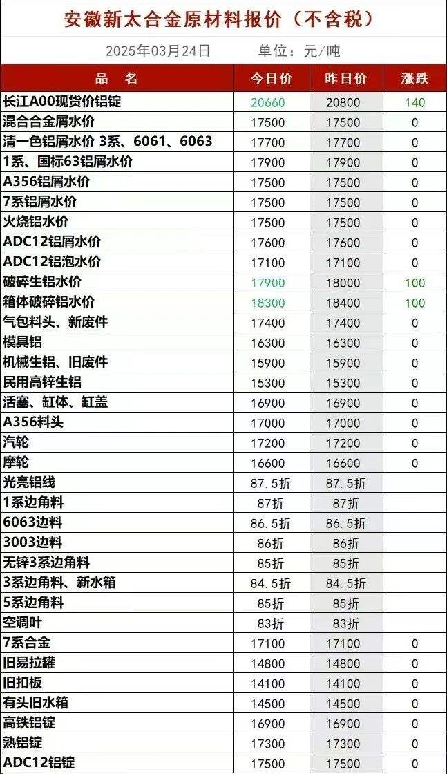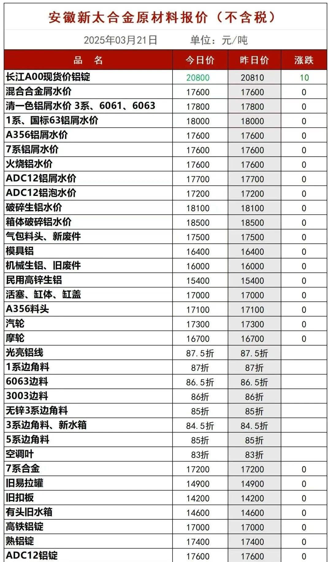 ****年*月**日安徽新太合金原材料报价