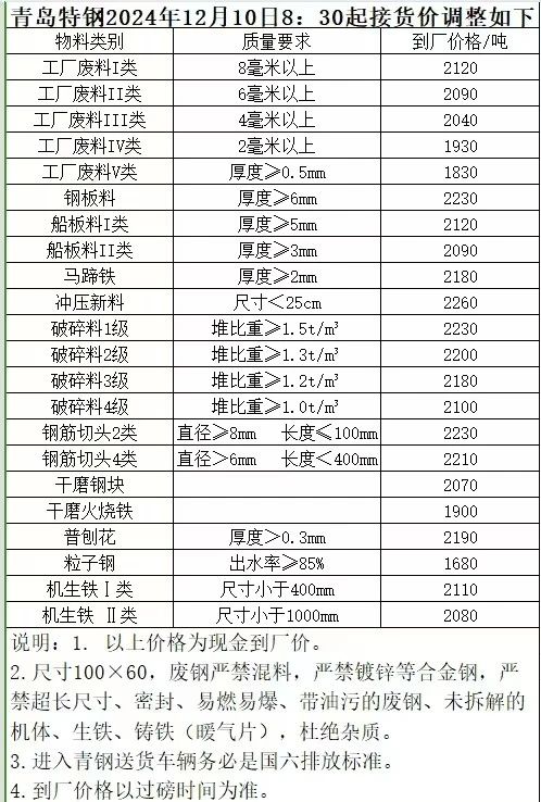 潍坊特钢集团有限公司废钢收购规格及价格,个人到货价------重型废钢,****元/吨,特级废钢,****元/吨,中级废钢,****元/吨,以上规格及价格自****年**月**日上午*点开始执行(,齐帅)