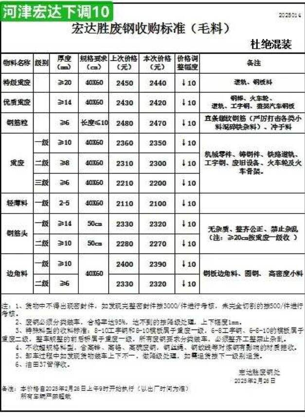 立恒通知*月*日*点*分废钢上调**元具体以价格表内为准