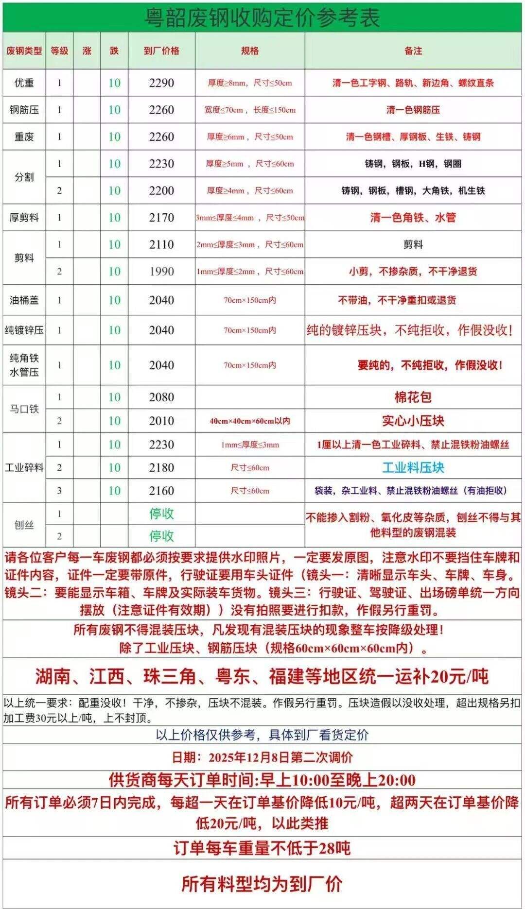 二次*日韶关粤韶废钢到厂价跌**,执行价: