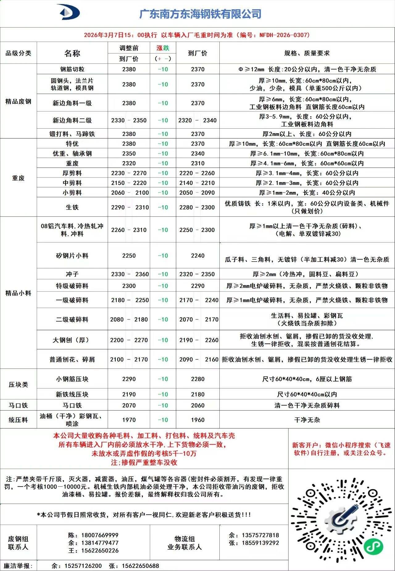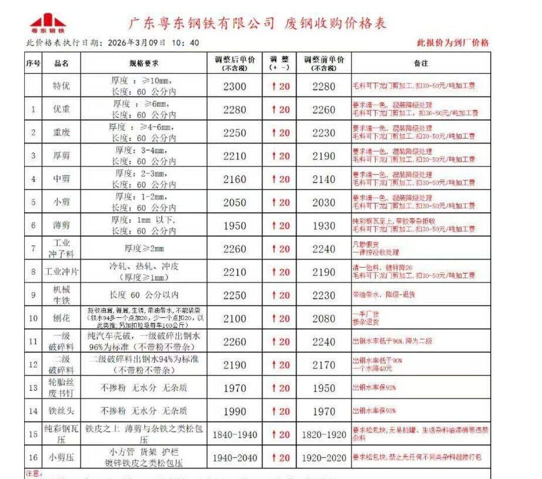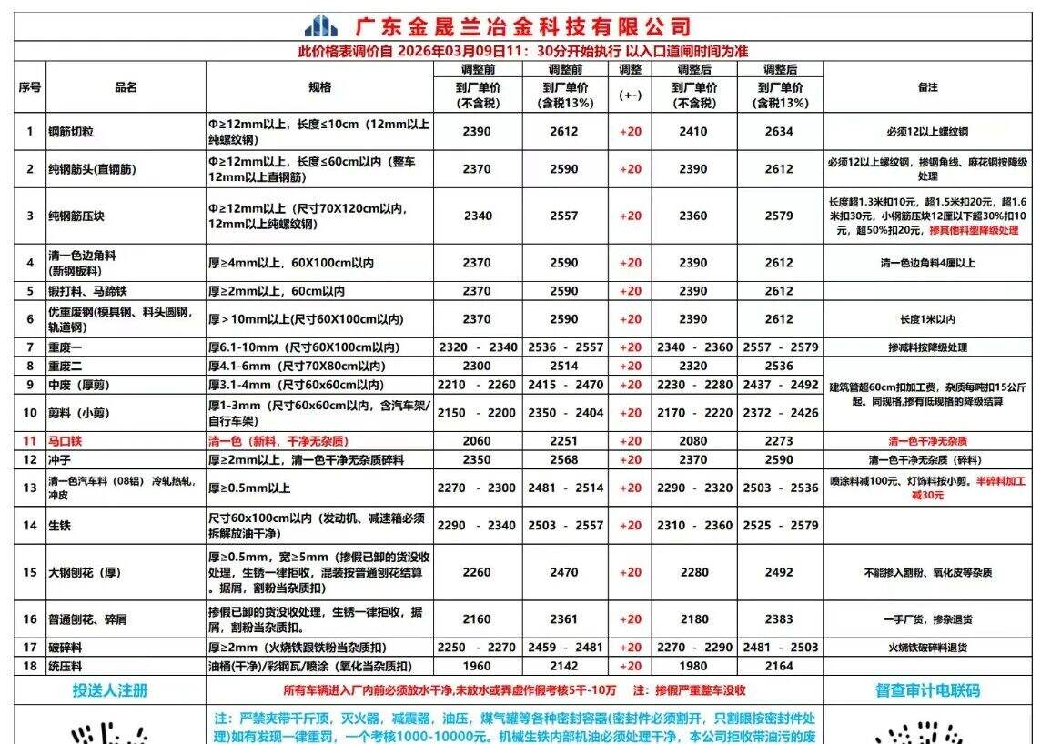 *日广东揭阳国鑫废钢价格调整: