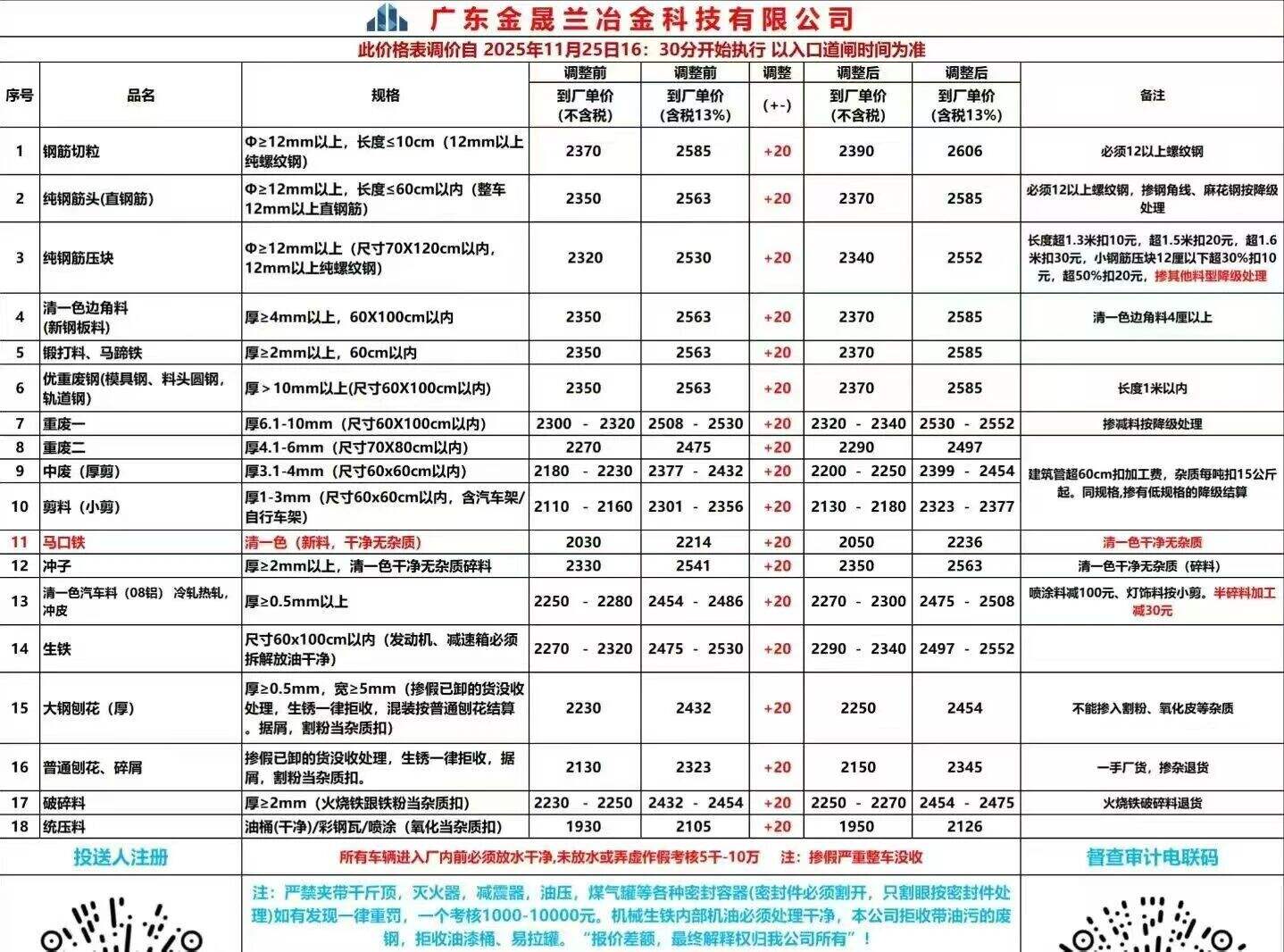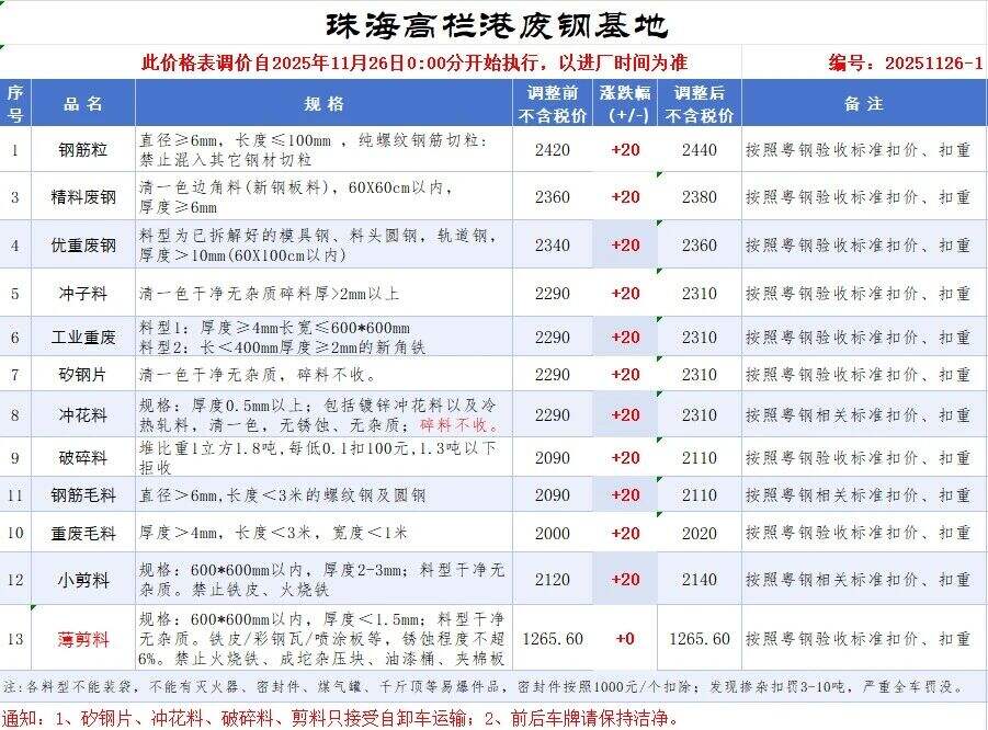 **日广东揭阳国鑫废钢价格调整: