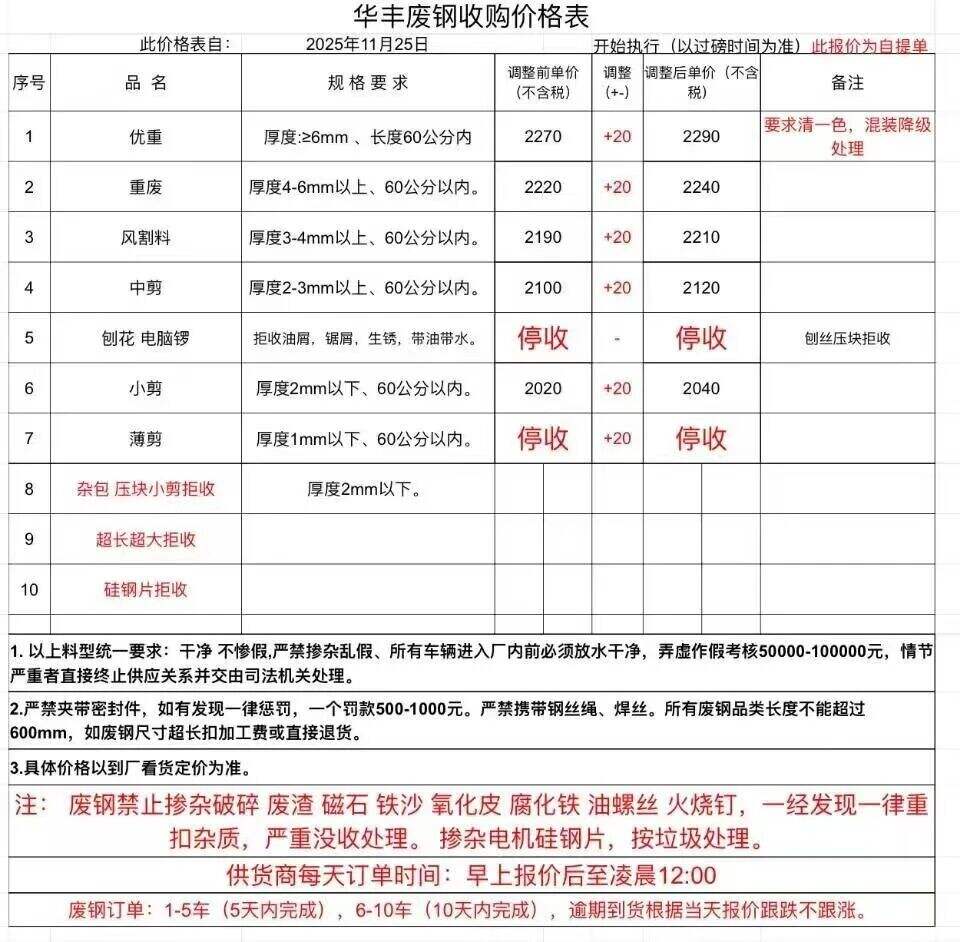 **日忠信华丰钢铁废钢涨**