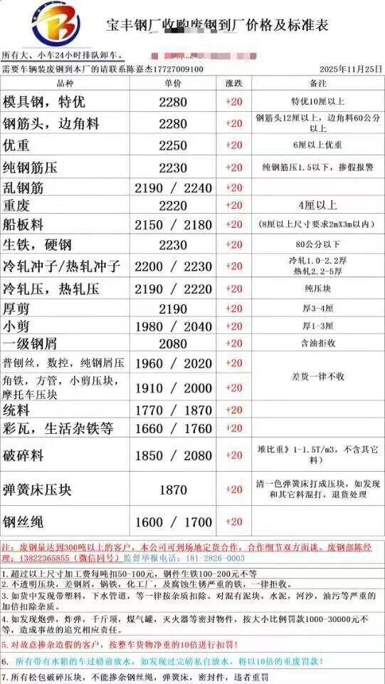 **日江门宝丰废钢涨**: