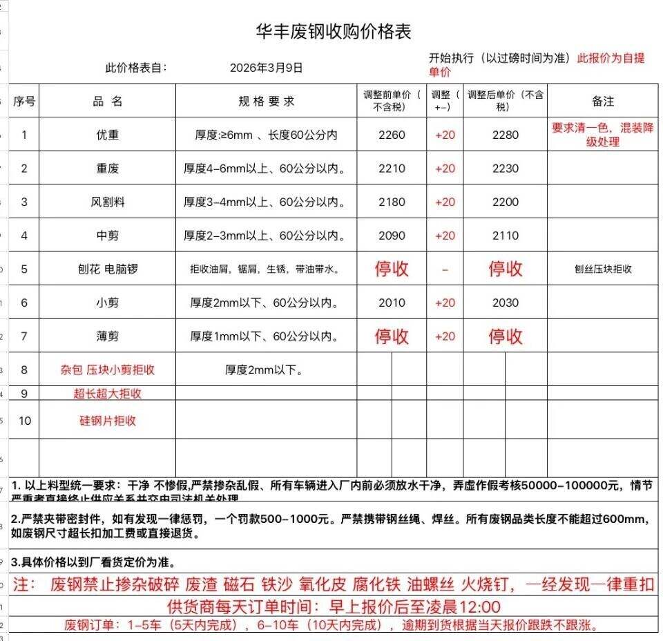 破碎料停收,重废毛料停收。
