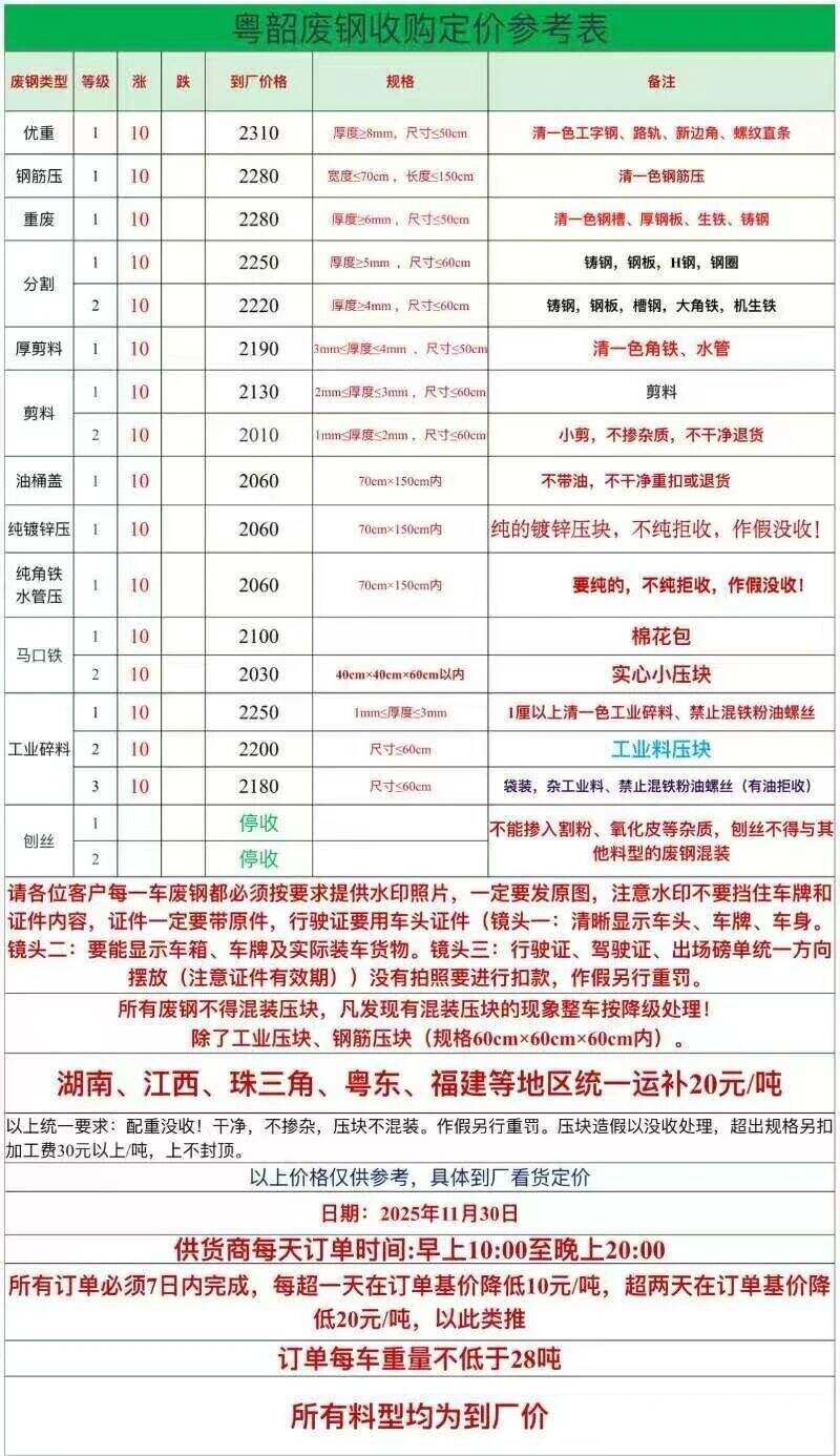 **日粤东废钢最新价。