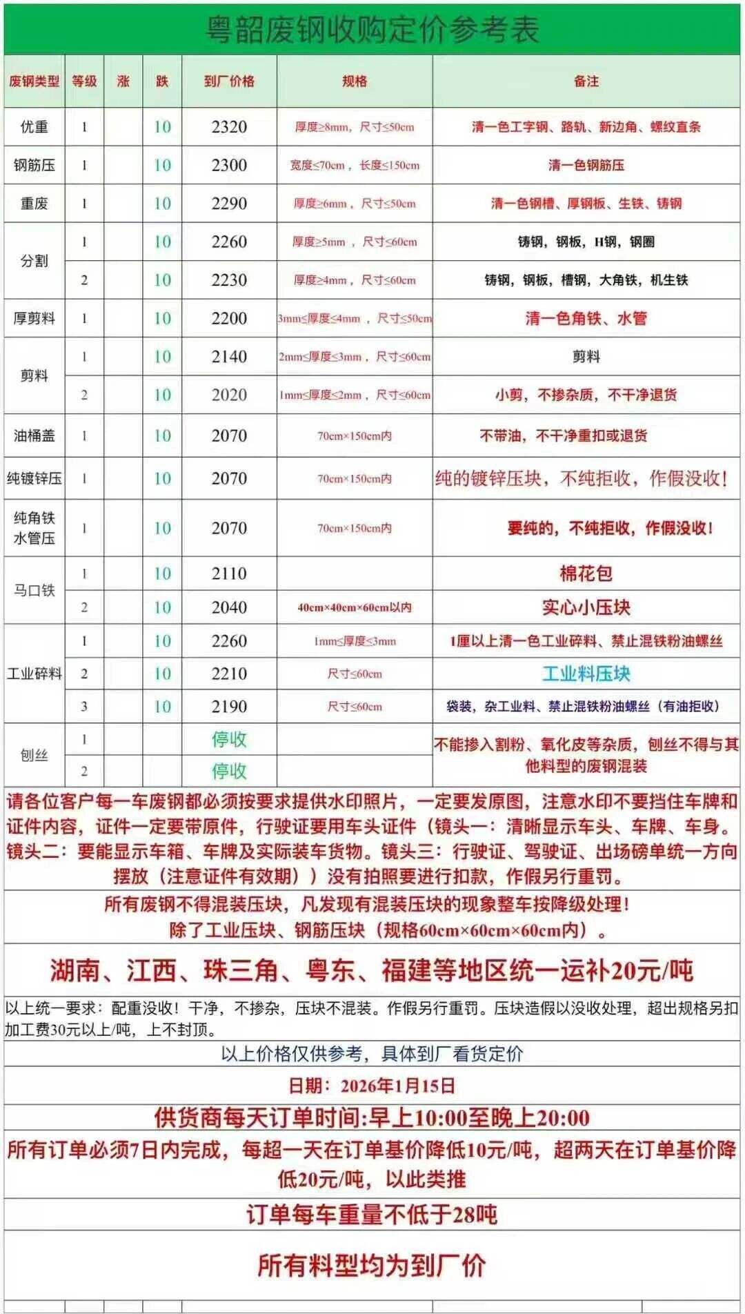 **日韶关粤韶废钢到厂价跌**,执行价: