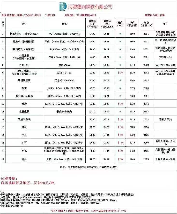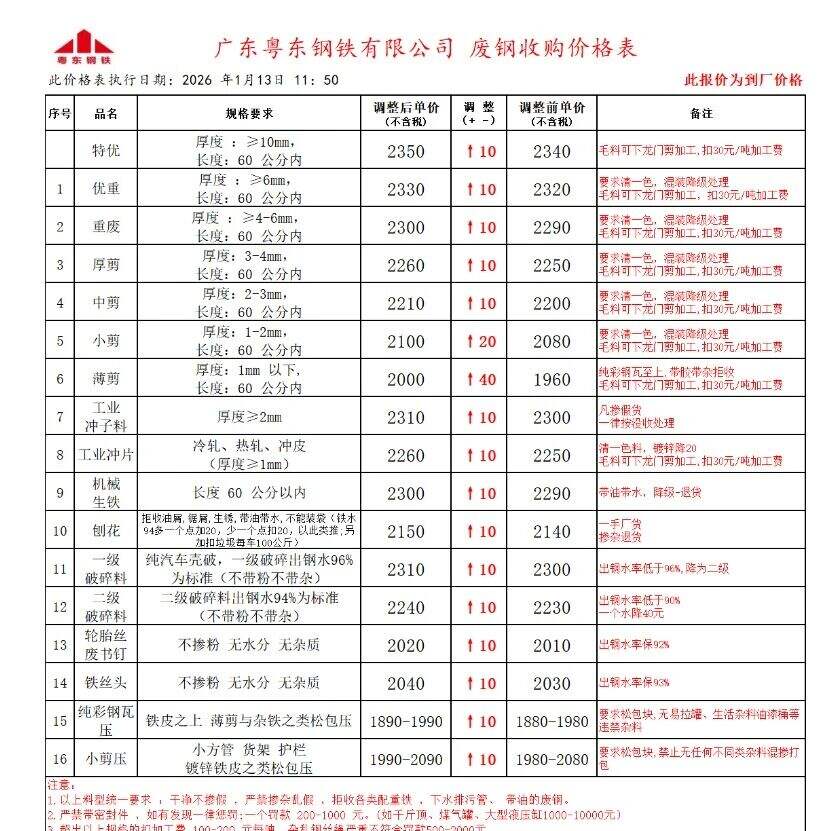 *月**日起,韶钢废钢部分上调**元/吨。