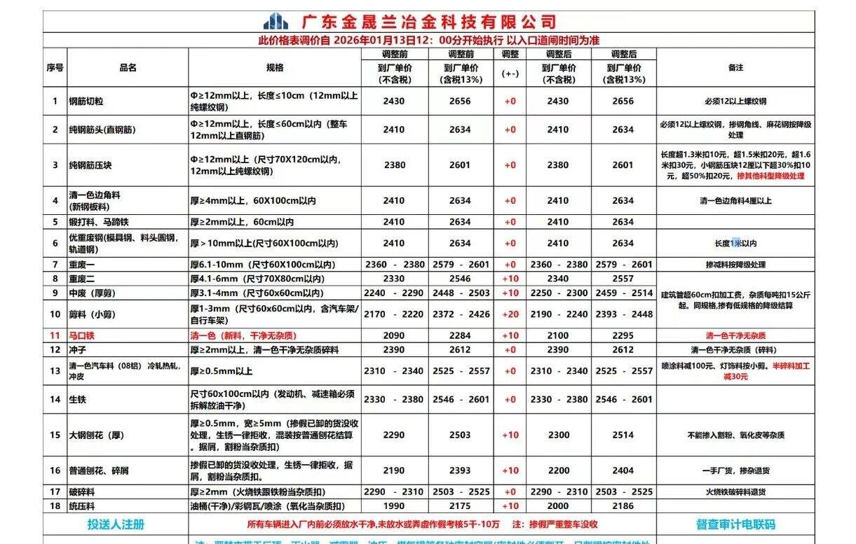 *日广东揭阳国鑫废钢价格调整: