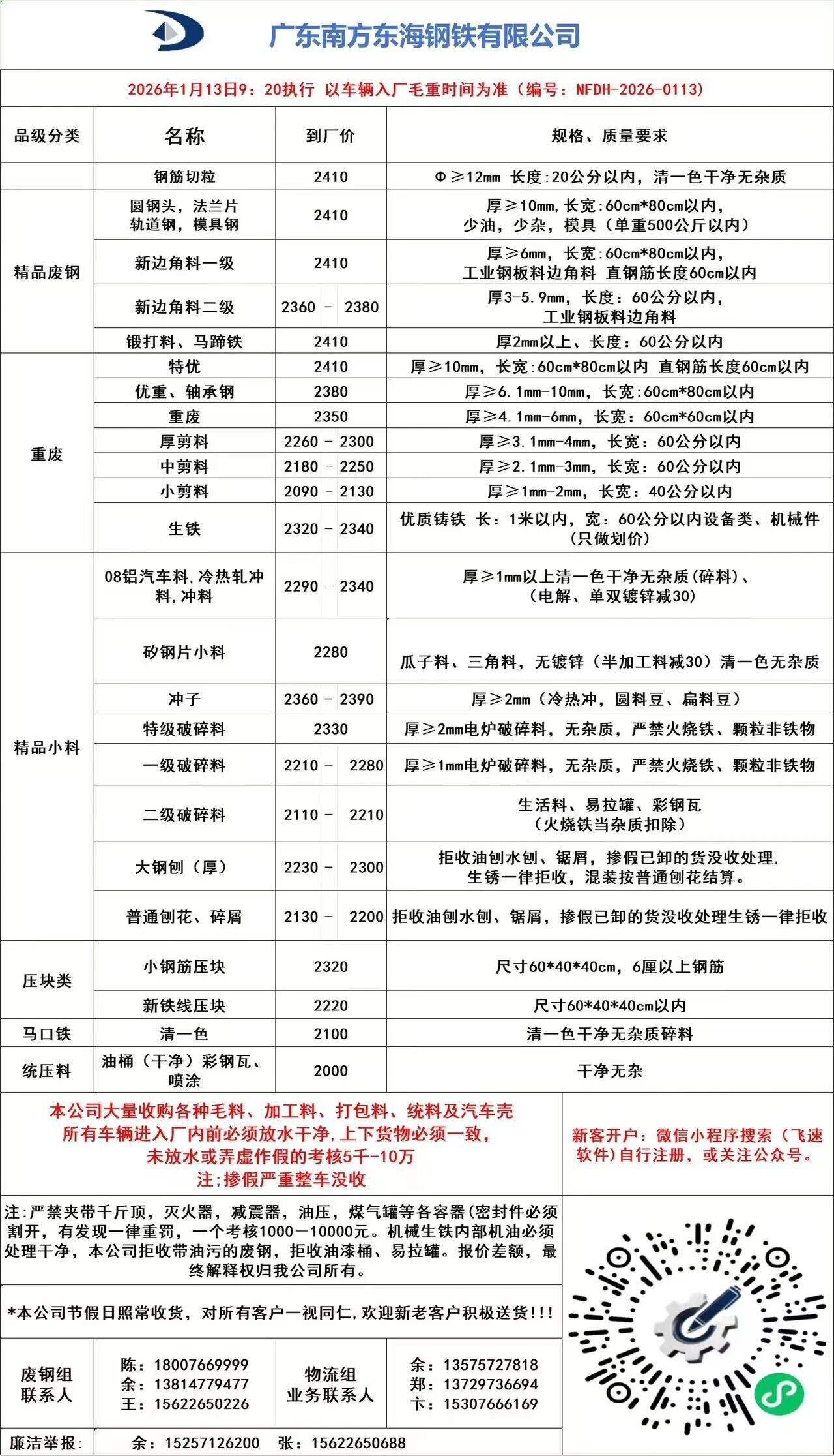 **日广东揭阳国鑫废钢执行价调整: