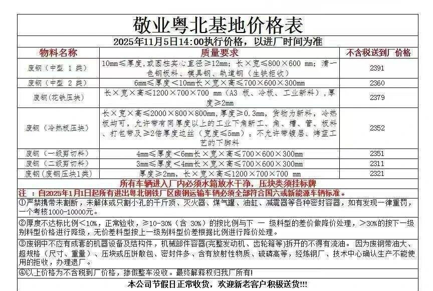 *日广东敬业粤北最新价。中型*类****,中型*类****,花铁压块****一级剪切料****,二级剪切料****