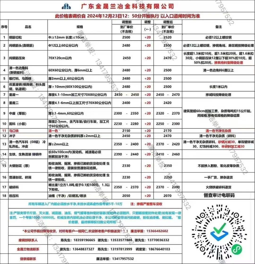 **日清远圣力跌**,特优****,边角料****,钢筋头****,分割优重****-****,生铁硬钢****-****,重废****-****,冲料(工业料)****-****,清一色汽车冲料****-****,马口铁****-****,厚料****-****,中剪****,小剪****-****,剪压料****-****,乱钢筋****-****,二厘料停收,监督电话