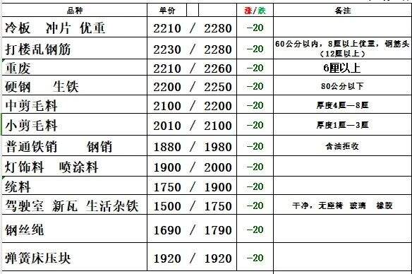 广东海阳物资回收有限公司废铁跌**元/吨,报价如下: