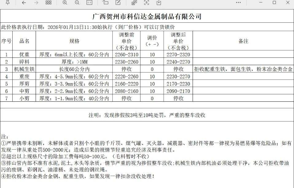 **日广西桂鑫废钢涨**,最新执行价,调整后