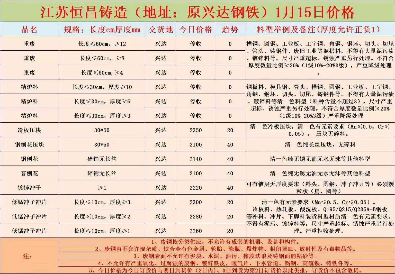 **日江阴兴澄特钢涨**执行价,重废一****,重废二****,中型剪切料一****,中型剪切料二****,中型剪切料三****,小型剪切料一****,小型剪切料二****,小型剪切料三****,轻薄一****,轻薄二****,破碎料一****外购冲豆二****。含税价。