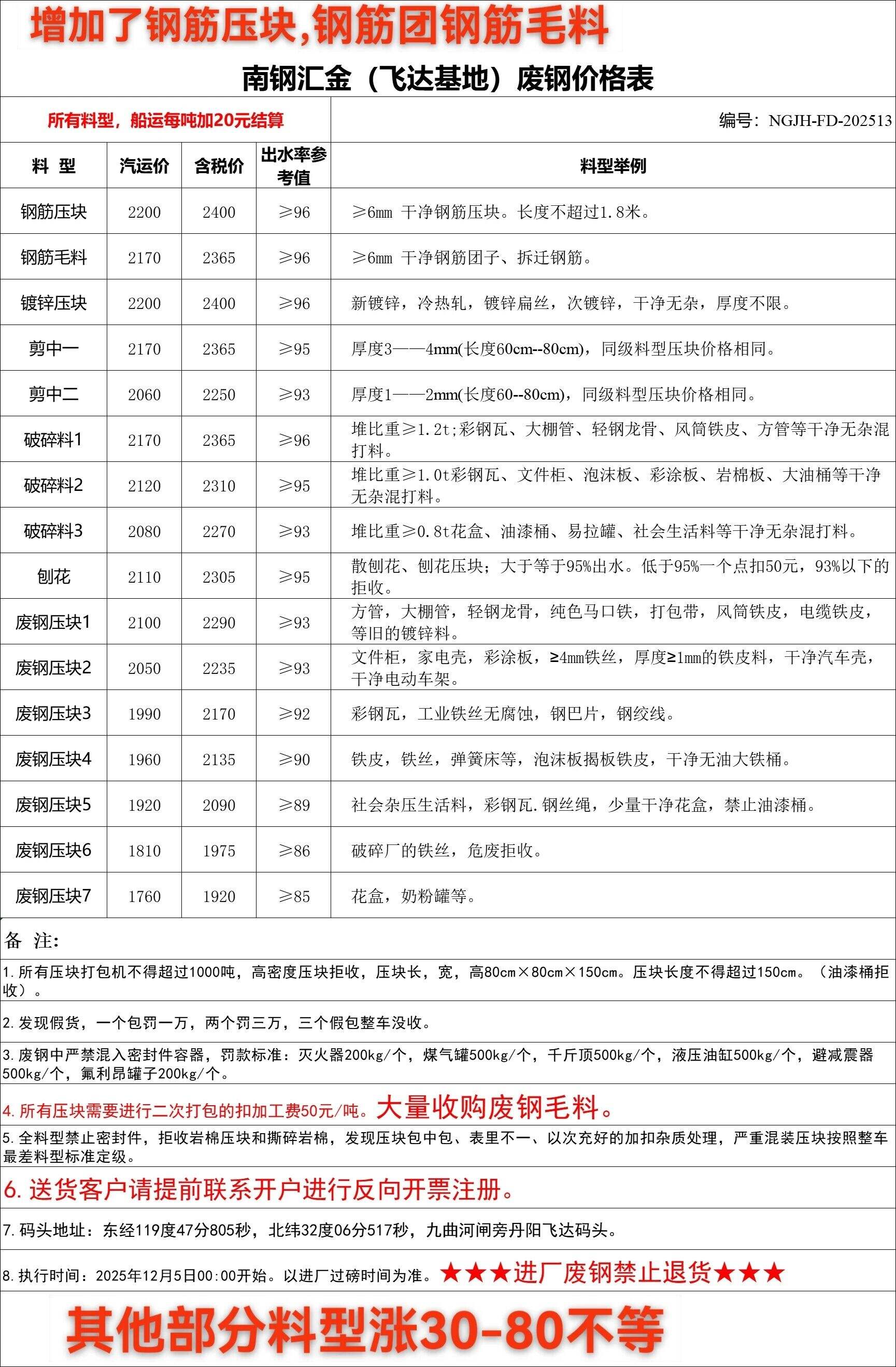 ****年**月*日南钢汇金(飞达基地)报价上调,送货联系***********李