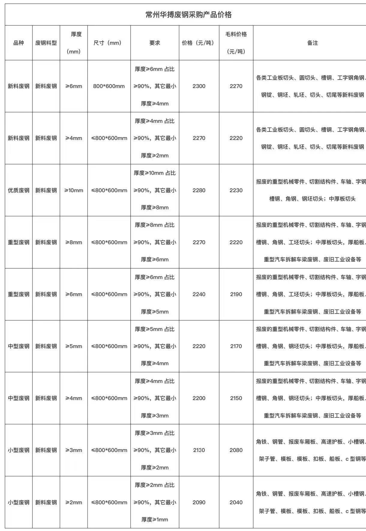 ****年*月**日常州华搏废钢采购产品价格