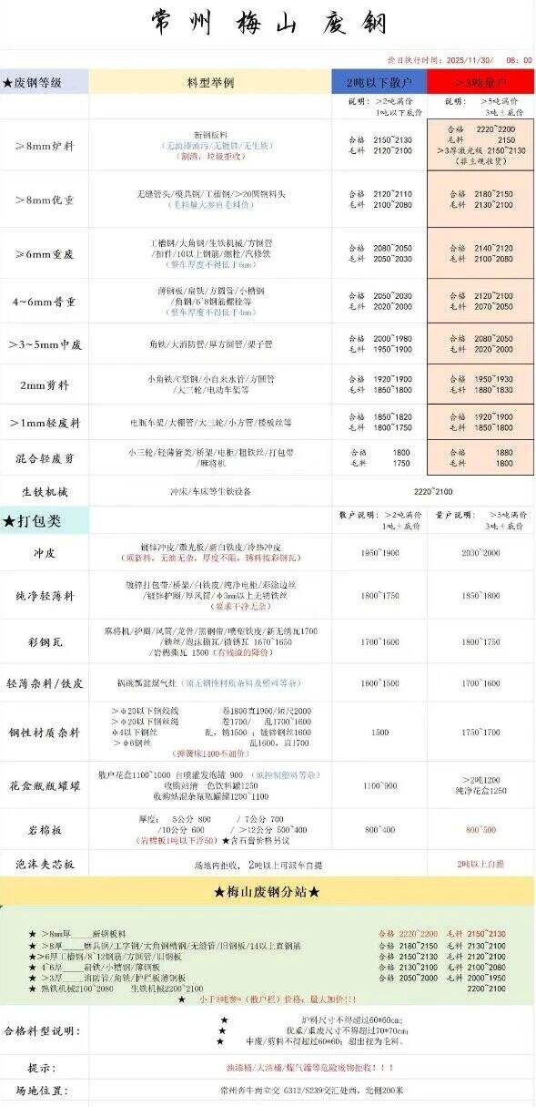南通九圩港天泽码头现款收:*以上新钢板炉料****、毛料****-****;重废、工角槽****-****;**上直钢筋****;桥梁模板、拆船毛料****-****左右;*以上激光板****;彩钢瓦****-****;气割料、大件生熟铁看货定价。密封容器.含油废钢拒收。可带票,价格另议。联系电话*********** 入场人员请佩戴安全帽!