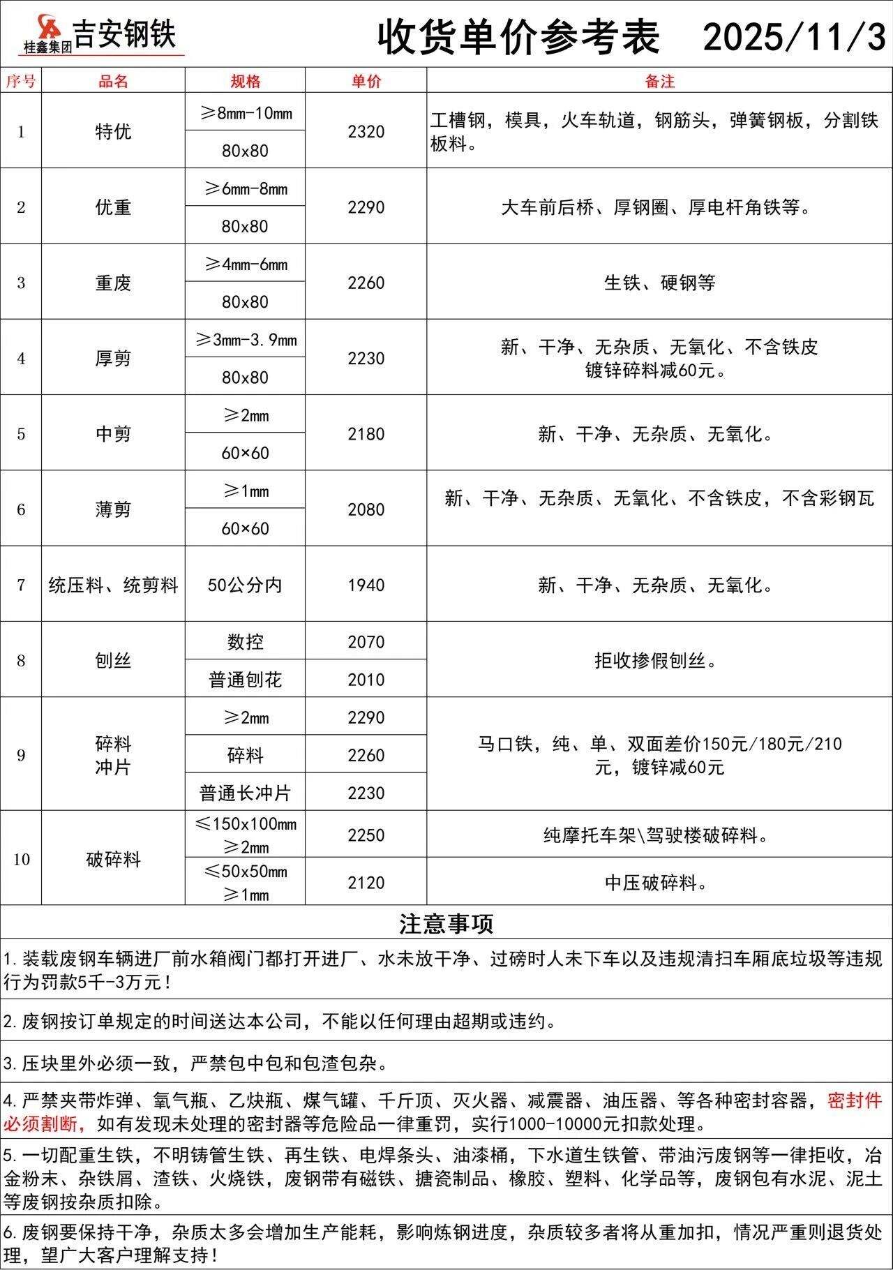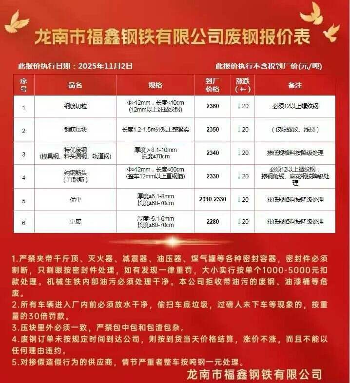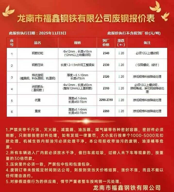 **月*日江西龙南福鑫废钢跌**,详见价格表