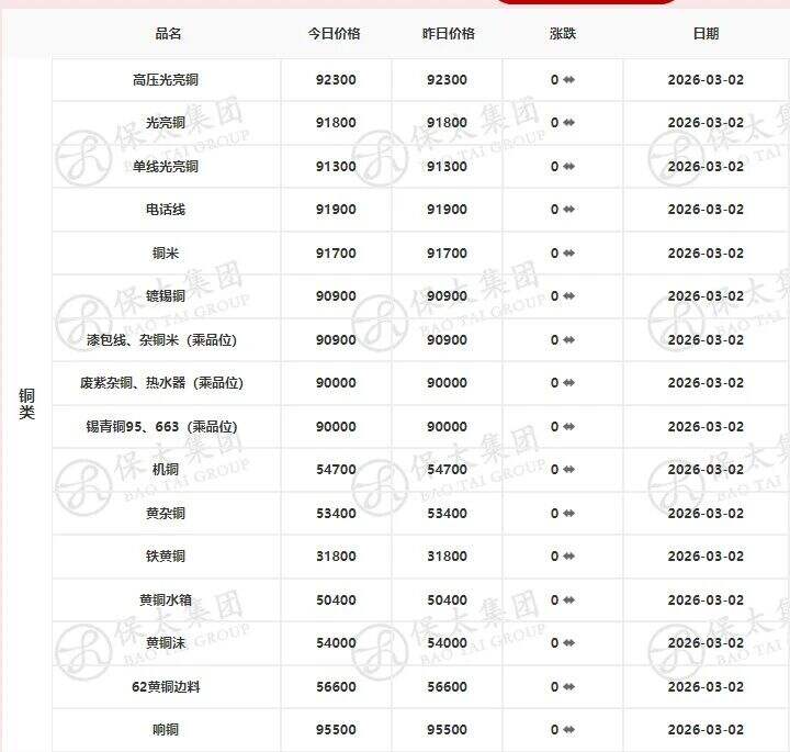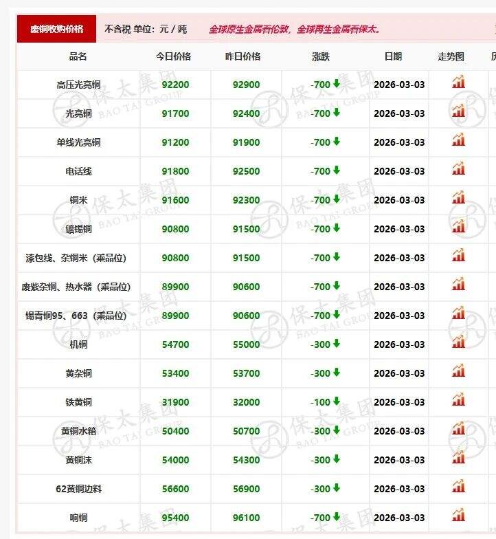 ****年*月*日江西保太有色金属集团有限公司废铜报价