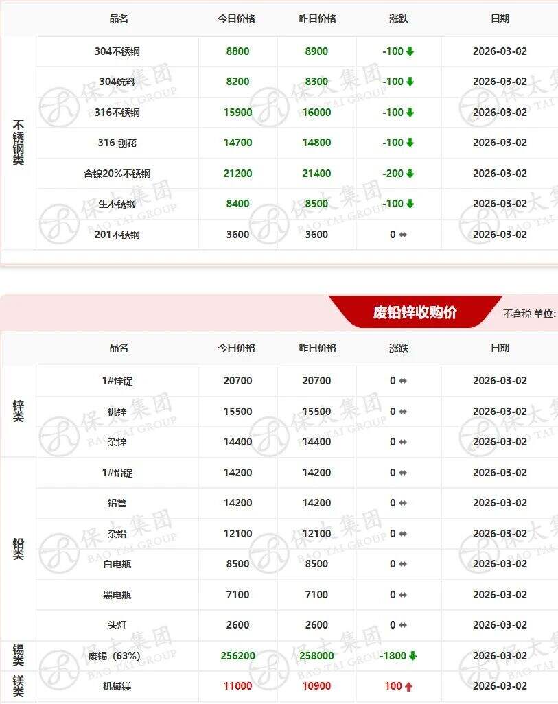 ****年*月*日江西保太有色金属集团有限公司不锈钢、镁类报价